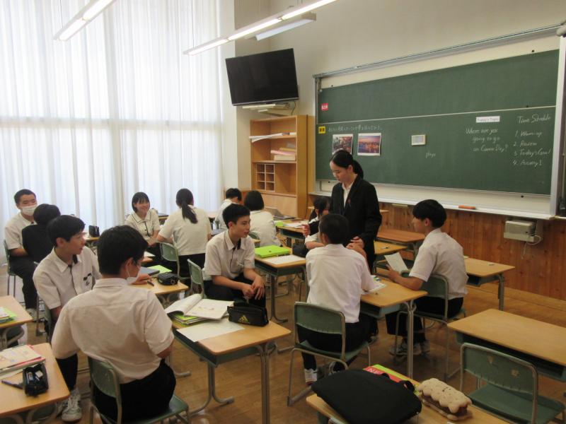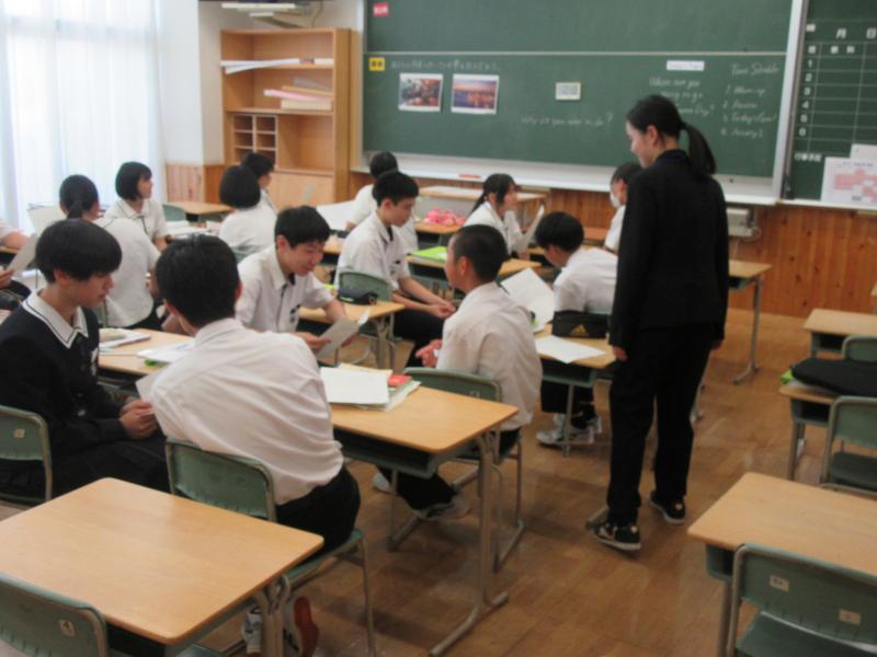 先生の優しい雰囲気の中で、生徒は活動しやすそうな様子でした。それに答えるかのように、生徒の対話からいろいろな表現が使われていて、聞く側の英語のあいづちも印象的でした。