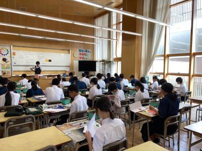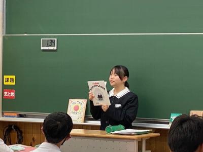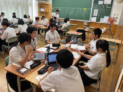 2年生の国語の授業では「ビブリオバトル」のグループ発表会を行っていました。グループで1名代表を決め、今後学級発表会を予定しているそうです。