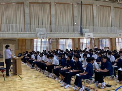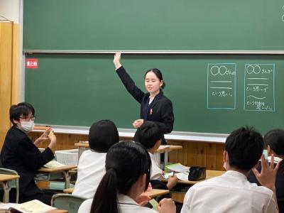 教育実習生の宮島先生は、本日道徳の授業を行っていました。生徒が意見をしっかり考える時間を作り、付箋を使ってペアやグループで活動させるなど様々な工夫をして授業を行っていました。
