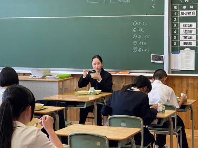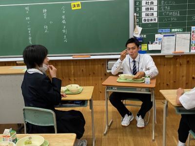 そして、今日の給食は「キムタクご飯」です、木村拓哉ご飯ではなく、漬物嫌いを克服してほしいと長野県の栄養士さんが考えた「キムチとたくあん」を混ぜ込んだご飯です。教育実習生のお二人は給食が楽しみだと話していました。