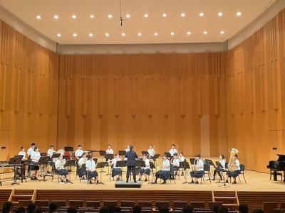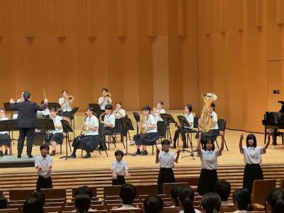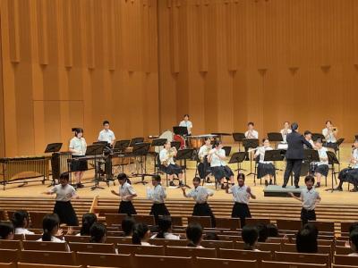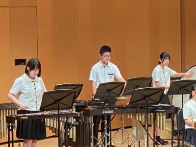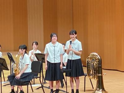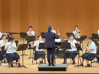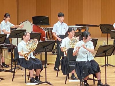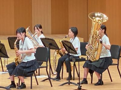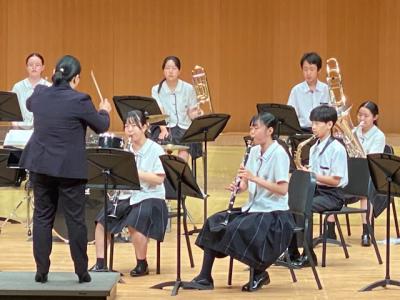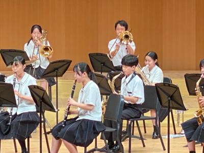 本校は、プログラムの最後に登場し、「ふじの山」「第5組曲」「学園天国」の3曲を演奏しました。最後の曲の学園天国では、1年生がダンスで会場を盛り上げてくれました。今後、7月19日(土)に金沢歌劇座で行われる「石川県吹奏楽コンクール」に出場予定です。お休みの中、多くの保護者にお越し頂き、本当にありがとうございます。