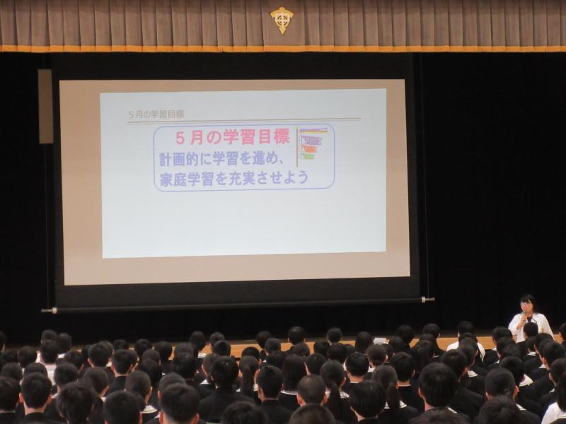 本日午後から全校集会がありました。新年度が始まって1か月の振り返りと、5月に頑張ることを確認しました。