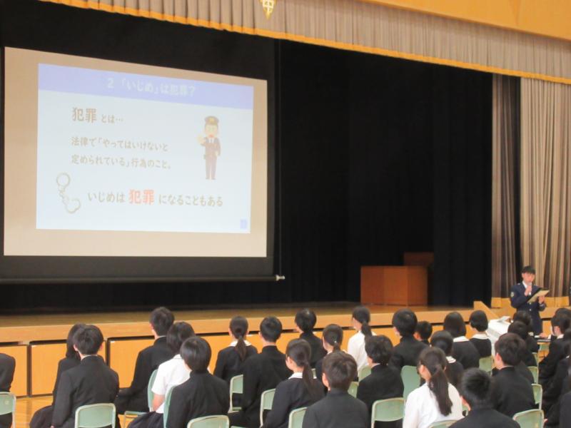 また、集会の最後には津幡警察署生活安全課の方より、いじめ防止に関する講和をしていただきました。相手を思いやることが重要であることを再認識する時間になりました。