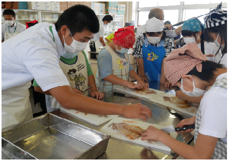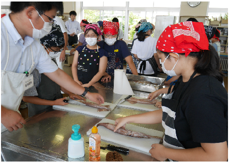 しかし、能登高校のみなさんが安全に配慮しながら、さばき方を分かりやすく教えてくれました。「令和」最初の夏休みに、貴重な経験ができました。