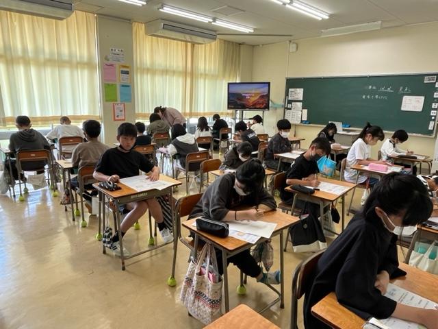 写真は5年生の今日の1時間目。テストのようすです。大変集中している様子がうかがえました。