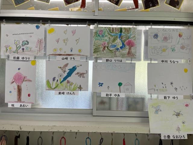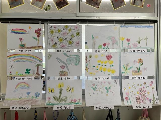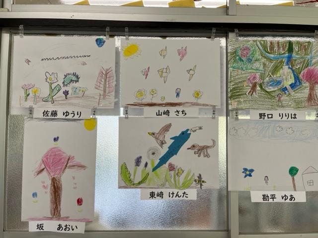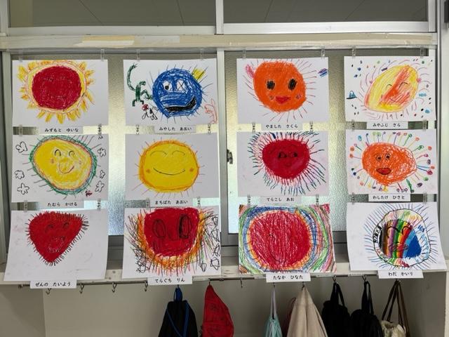 1,2年生の教室の横に、ほっこりする作品が掲示してあります。