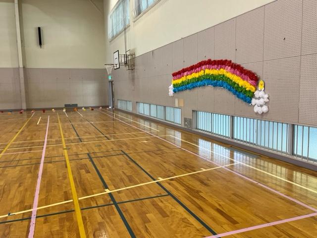 1年生が入学してからもう3週間。体育館には、6年生が中心となり、素敵な飾りつけをしてくれました。雰囲気が出ています。