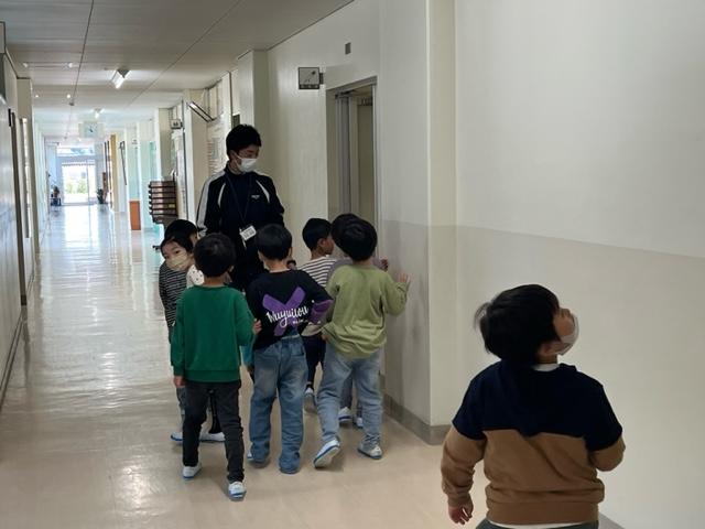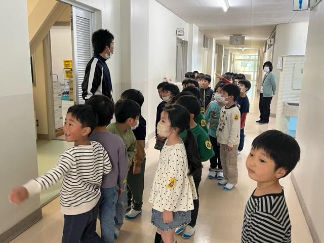 廊下で静かに並び、放送室・職員室・校長室を訪れた1年生でした。
