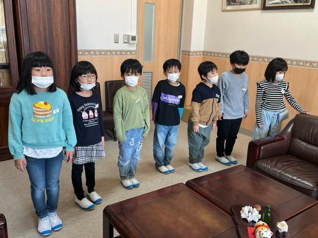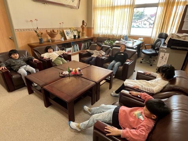 校長室では、特別に! ふかふかのソファーに座らせてもらった1年生でした。