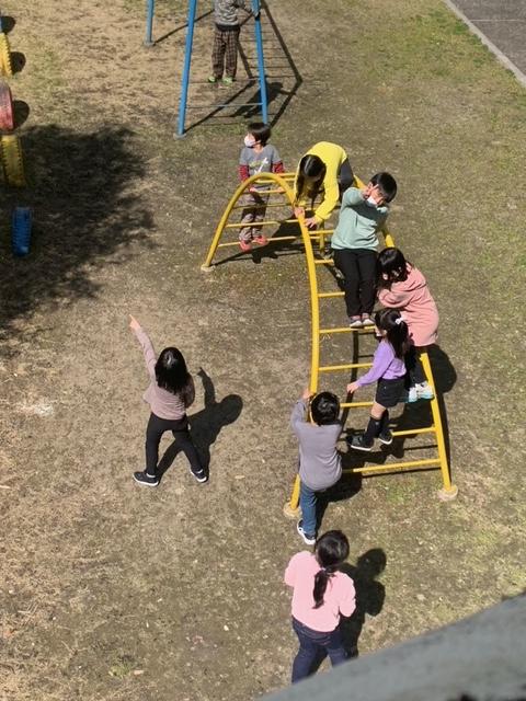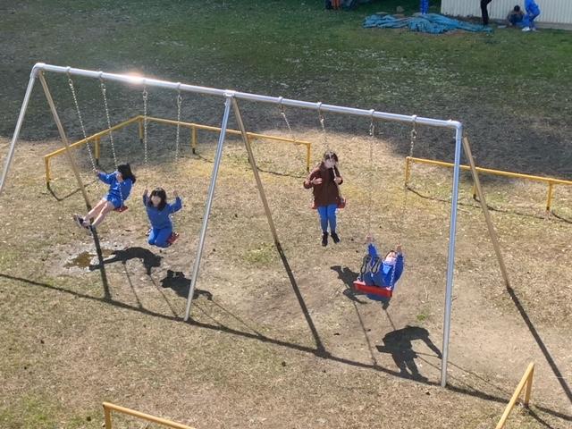 仲良くブランコしたり、ジャングルジムにのぼったり・・。