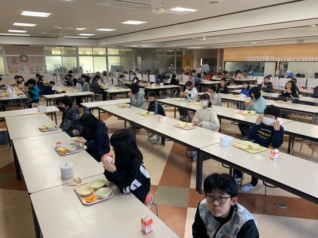 6年生がいなくなり、5年生がランチルームで皆と一緒に給食を食べています。