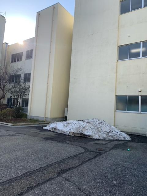 学校の片隅にある大きな雪山もだんだん小さくなってきました。