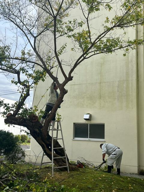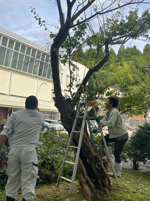 また、先日、児童玄関前の庭では、冬に備えて校務員さんたちが、木の枝切り作業をしておいでました。職員室前の廊下が明るくなった気がします。