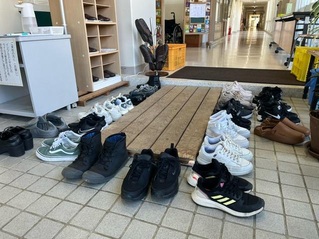出入り口に並んだ保護者の方の靴は、数え切れません。今日もたくさんの方に来校していただきました。本当にありがとうございます。
