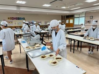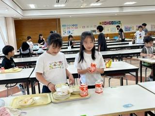 静かになったら、給食委員の代表が給食メニューの紹介など行い、全員で『いただきます。』