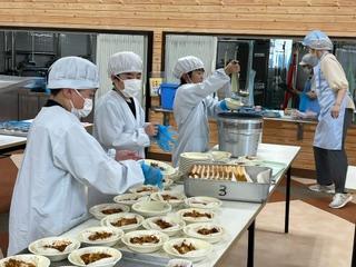給食当番、食事をしている様子、後片付けなどの様子です。