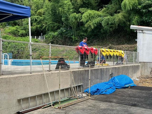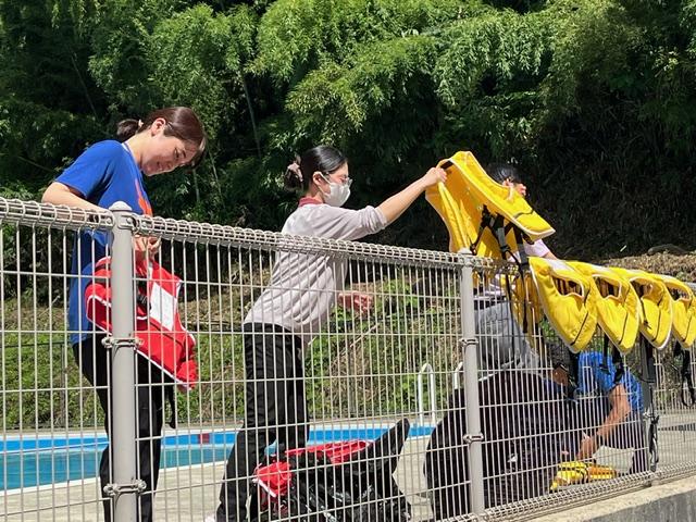 また、プールサイドでは着衣水泳で使ったものを乾かすなど、後片付けをしています。
