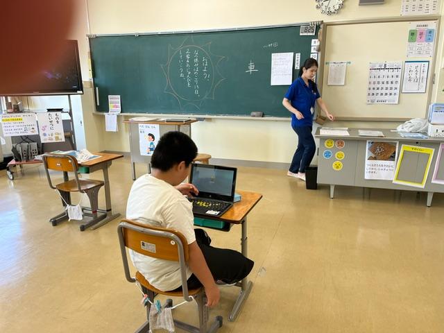 学年登校日にむけて、いろいろ準備している宇出津小学校です。