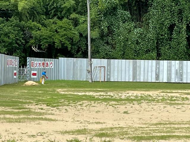 こんな蒸し暑い日でも、グランドでは校務員さんは、草刈りをしておいでます。もう一人の方は、ベランダのガラスをピカピカに!