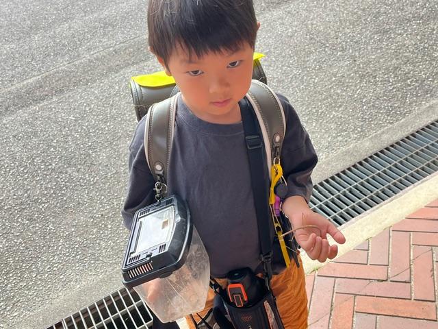 でも、「蜘蛛の巣に引っかかった!」というので、蜘蛛の巣から外してあげました。元気な1年生。1学期、校長にとっては、ドキドキな朝の時間になっています。