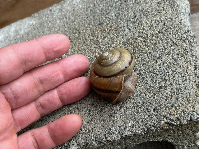 今朝、1年生の児童が「これ、校長先生に!」と言って、大きなカタツムリを手渡してくれました。とても大きなカタツムリ。児童は、どこにいたのか、どんなふうに見つけたのか、詳しく説明してくれました。