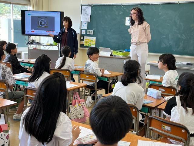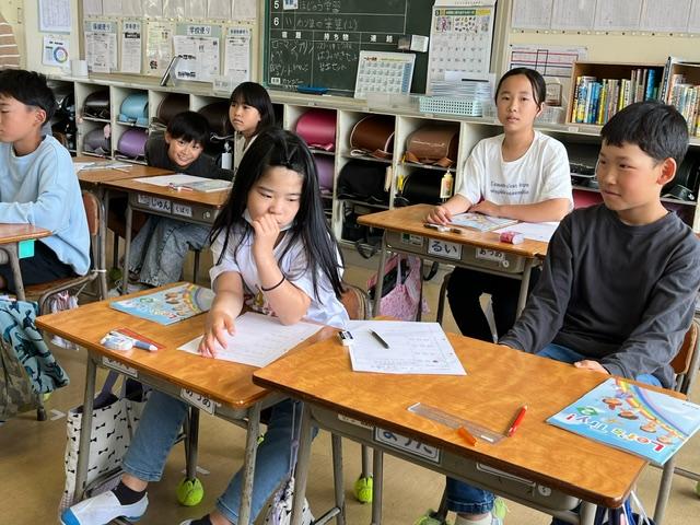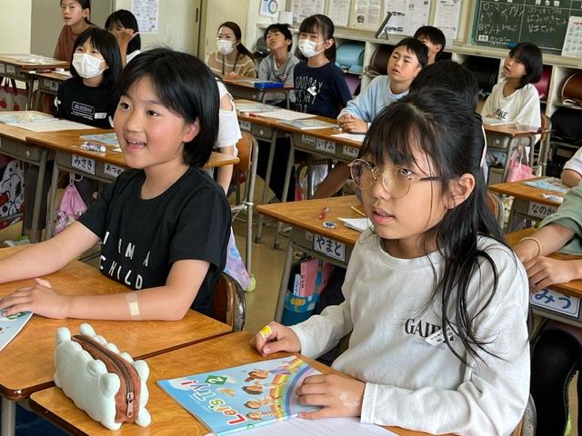 写真は、4年生が一緒に外国語活動をしている様子です。とても元気な4年生です。