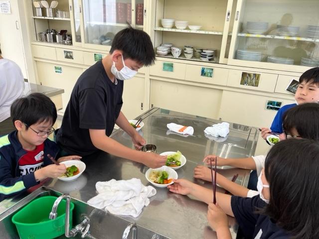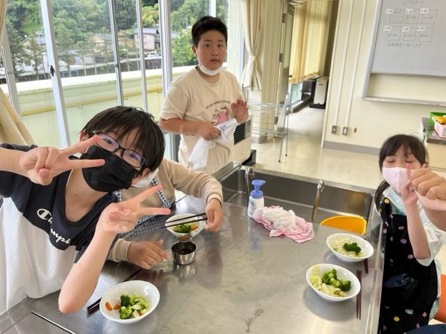 野菜をゆでて、自分たちでつくったドレッシングをかけて食べました。