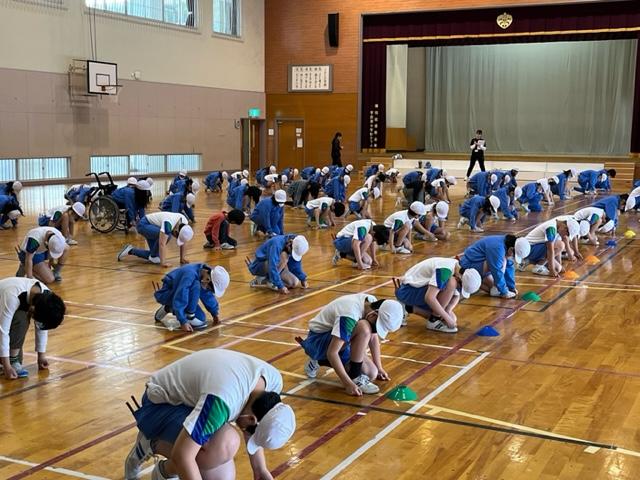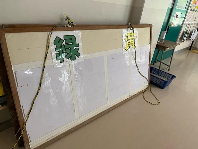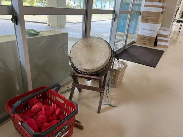 全体練習のめあてを確認した後、大きな声・きちんとした姿勢で練習することができました。児童玄関には、運動会で使う用具が並べ始められています。