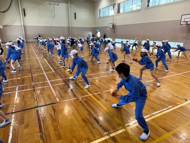 6年生はグランドで鼓笛の練習をしていました。また、体育館では、写真のように3年生~5年生がよさこいの練習をしていました。