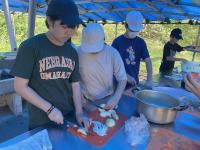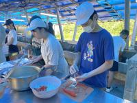 部屋の掃除、身支度が終わり、野外炊飯を行います。