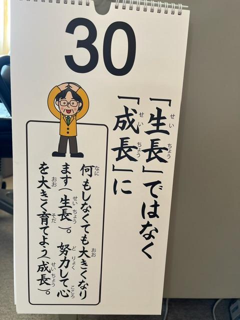 ちょうどカレンダーには、『生長』と『成長』の違いが書かれていました。