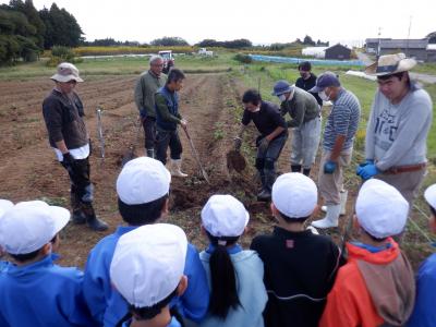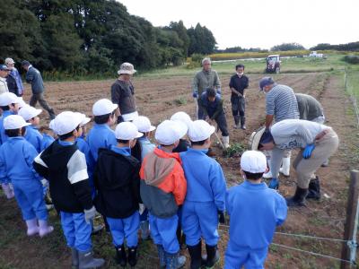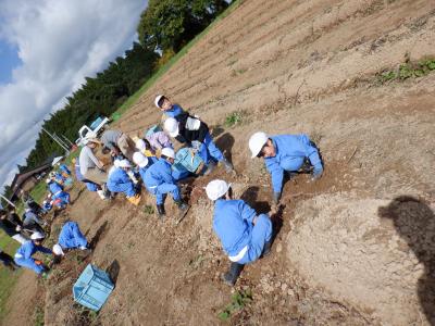 すばらしい秋晴れの中、日本海倶楽部ザ・ファームの方々のご厚意で、いもほり体験を行いました。