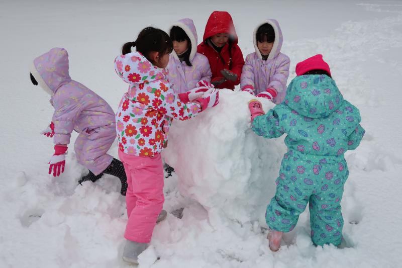 大人にとっては「厄介者」のイメージのある雪ですが、子どもたちは、ふわふわの雪に大はしゃぎです。