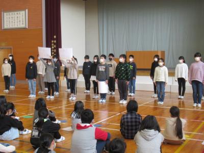委員長一人ひとりの言葉からは、宇出津小学校をよりよくしていきたいという熱い思いが感じられました。宇出津っ子全員がスローガンのように、学校生活で大きく活躍することを期待させる任命式でした。