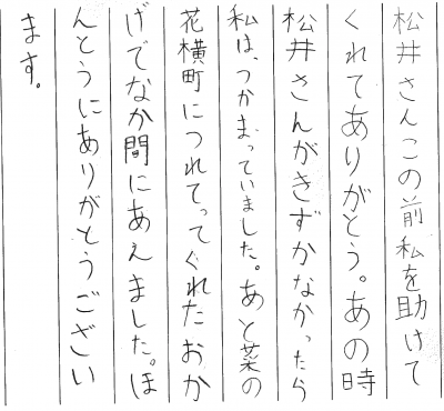 「松井さんに助けてもらって、ありがとうの気持ちを伝えたいはず。」