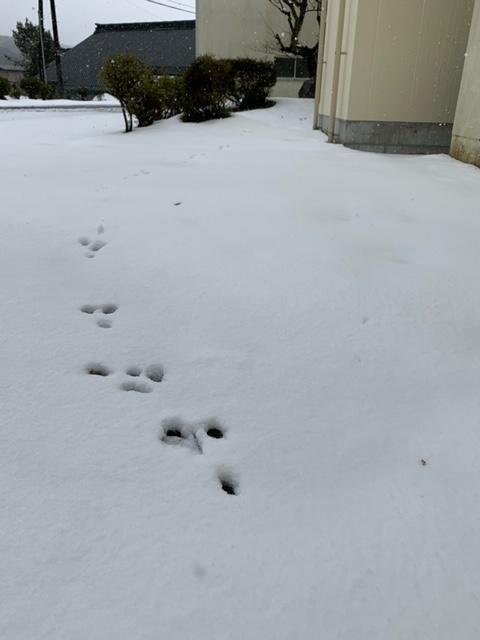 ちなみに玄関前の足跡は、その特徴から『〇サ〇』かな。皆さんが冬休みを過ごしている間に、珍客が宇出津小学校の様子を見にきたようです。