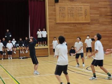 教室後、3年生について、話を聞く態度、バドミントンを楽しむ姿勢、声をかけ励まし合う心など、お二人からたくさんほめていただきました。