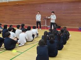 1月27日(火)、3年1組、3年2組でスポーツ教室を開催しました。金沢学院クラブから、藤田マネージャー、内野選手が来校し、トップレベルの技術を目にしました。お二人の指導のもと、久しぶりのバドミントンを楽しみました。シャトルを打つ心地よさを思い出した頃に、50分の教室終了となり残念がっていましたが、受検でなまりがちな身体と心がリフレッシュできました。