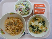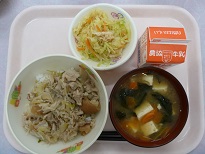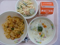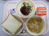 今日は1年生は宿泊研修に出かけていって、2,3年生だけの給食でした![]()