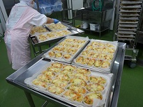 機械で皮をむいてから、食べやすい大きさに切ります。煮くずれないように煮るために、にくじゃが当番さんは気を使いながら煮ていました