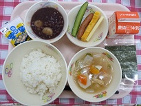 白玉ぜんざいは地元産の小豆を使いました子どもたちのの反応は・・・ぜんざい好きです!という子が多かったですほとんど残食もありませんでした。よかったです