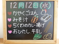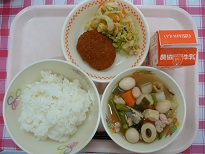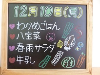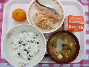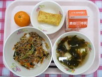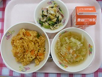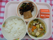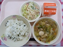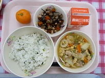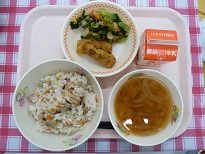 まぜごはんは人気があり、白ごはんの時より残食も少ないですおひたしは小松菜、白菜、にんじんで作りました。野菜がみずみずしくて美味しかったです