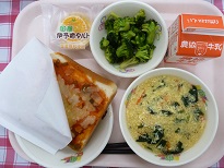 焼き上がったピザトーストは、一枚ずつパン袋に詰めて、配食しやすく、手に持っても食べやすいようにして出しました