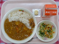 豚肉のカレーとは一味違った味になりました水菜のあえものは、お酢をきかせてあるので、カレーのお口直しになりました