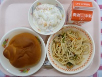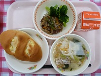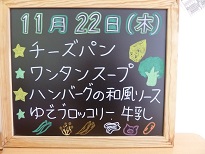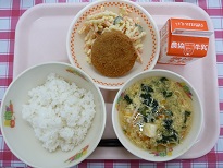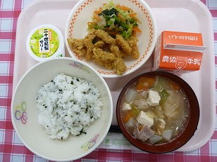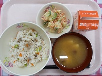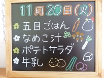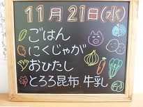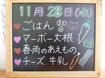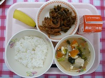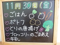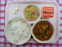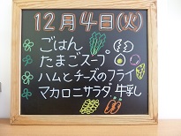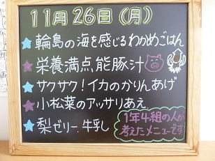 今日の献立は、1年4組の北出さん、森下さん、中尾さん、茶園さんグループが考えてくれたものです