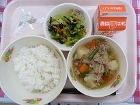 *栄養満点能豚汁(1年4組、3年4組輪島塗給食)