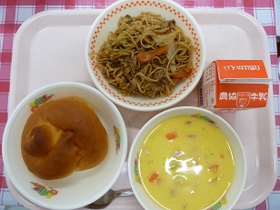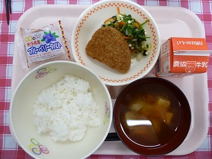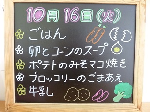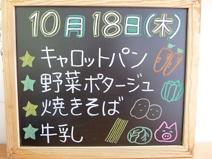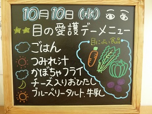 目によいはたらきをしてくれる食品を使いました にんじん、かぼちゃ、ほうれん草などビタミンAが豊富なものや、ブルーベリーを使ったデザートなどを出しました