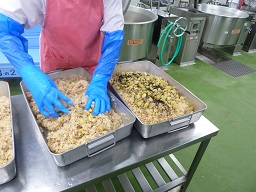 ~栗が均一に行きわたるように丁寧に混ぜています~