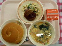 今日は切り目の入ったミルクパンに、ハンバーグをはさんで食べるセルフハンバーガーでした