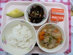 給食のにくじゃがは、豚肉で作ることが多いですが、今日は鶏肉で作ってみましたあっさりとしたにくじゃがに仕上がりました